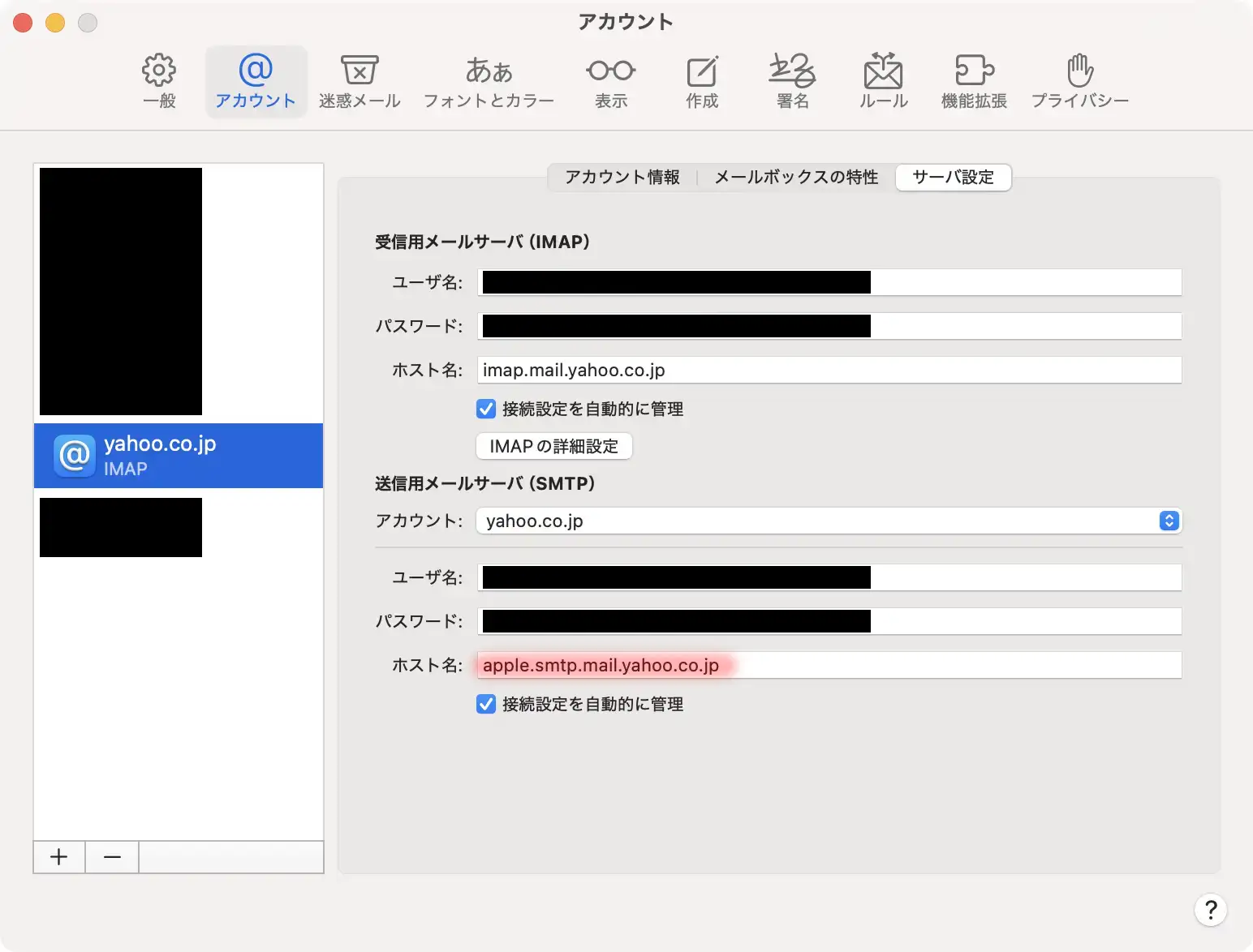 (2026年)Mac既存の「メール」アプリから、Yahooメールを送信出来ず。